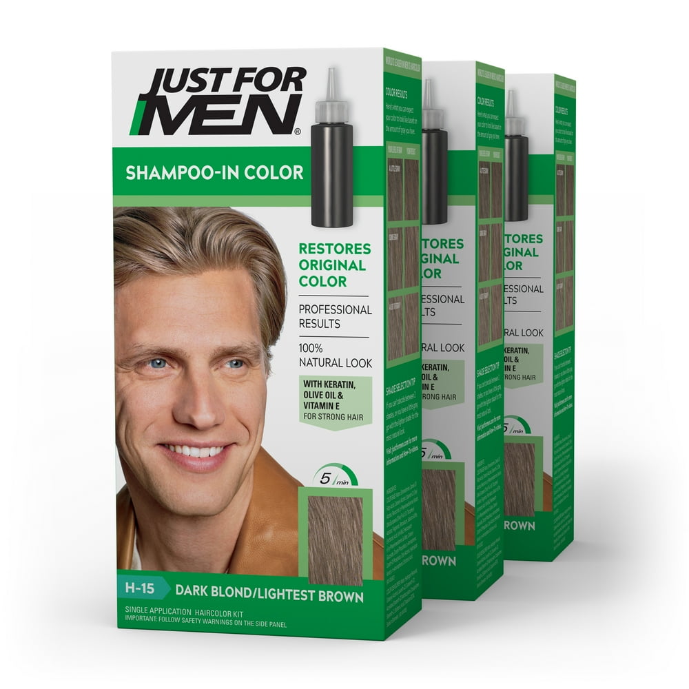 Just For Men ShampooIn Color, Gray Hair Coloring for Men Dark Blond/Lightest Brown, H15